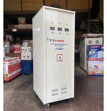 - Standa 75kVA 3 pha hoạt động theo nguyên lý điều chỉnh động cơ giúp dòng điện ổn định liên tục.