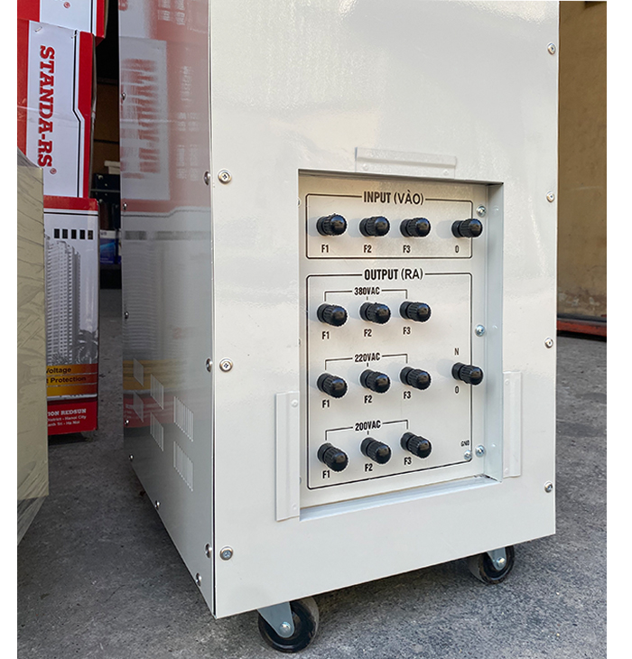 Tuy nhiên, máy ổn áp Standa 20KVA 3 pha của Công ty Cp TM & SX Redsun ngoài tác dụng ổn áp còn có thêm chức năng đổi nguồn điện áp ra từ 380V/3F sang 200V/3P hoặc 220V/3P để sử dụng cho các thiết bị điện nhập khẩu sử dụng điện áp theo tiêu chuẩn nước ngoài …