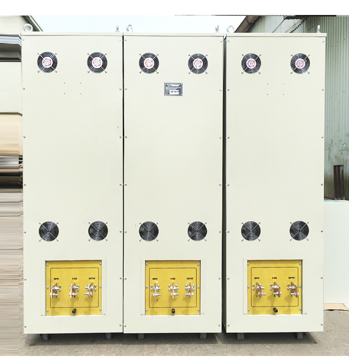 - Công nghệ điều khiển tự động bằng vi mạch tích hợp cho dải hoạt động đầu vào rộng với độ ổn định của điện áp ra cao (380V/3pha +/- 5%) và tốc độ đáp ứng nhanh.